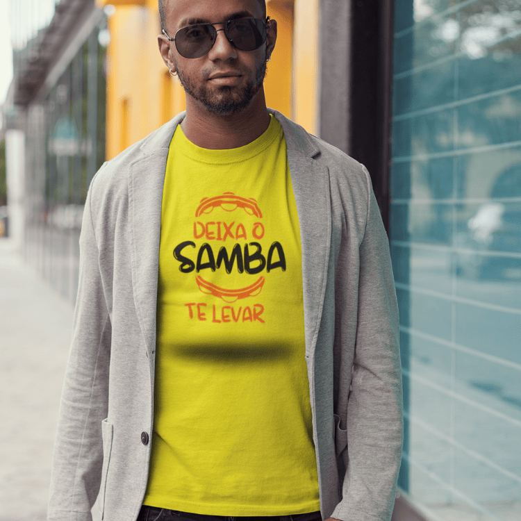 A camiseta “Deixa o Samba te Levar” é mais do que uma peça de roupa — é um manifesto de quem vive a música, a dança e a liberdade de ser leve.